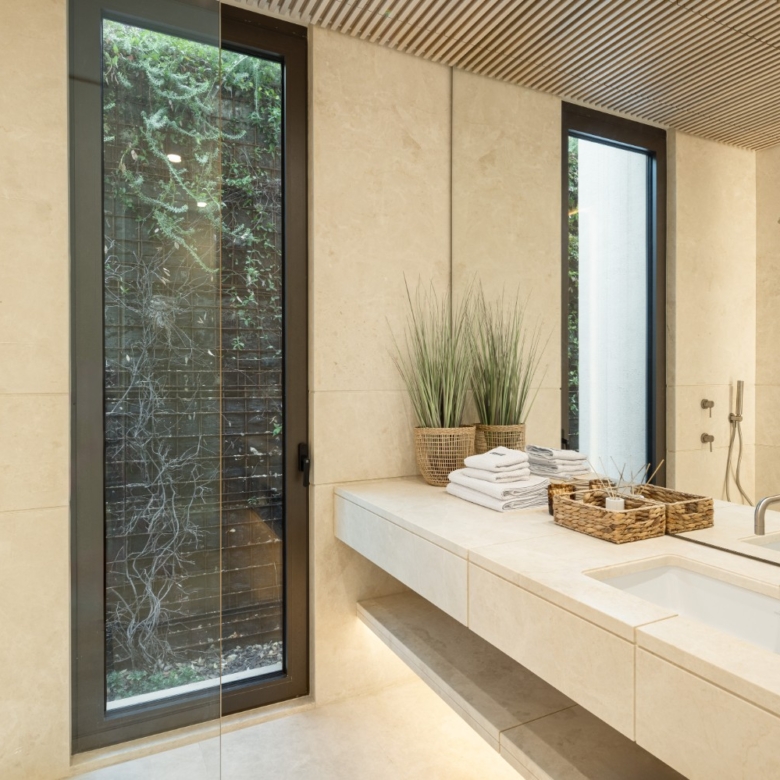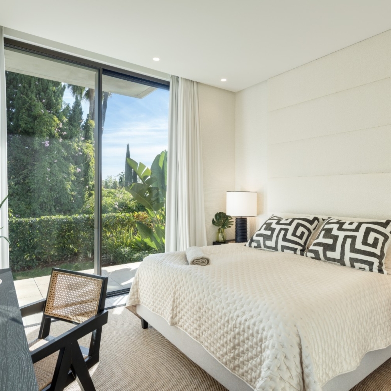En el interior, la casa exhibe el lujo moderno en su máxima expresión: elegante y acogedora, con un diseño refinado que equilibra estilo y comodidad. La cocina de vanguardia, equipada con electrodomésticos de alta gama, combina a la perfección forma y funcionalidad, ideal tanto para la cocina gourmet como para el uso diario. En la planta baja, un apartamento totalmente equipado para una empleada doméstica o una au pair garantiza mayor privacidad y comodidad para los huéspedes o el personal.