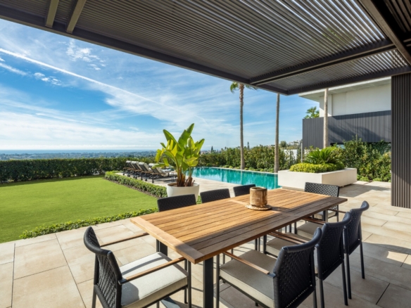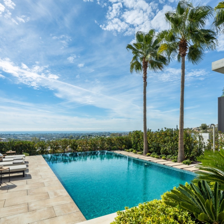 Esta excepcional villa, diseñada por el reconocido arquitecto Diego Tobal, se encuentra en una ubicación privilegiada en la exclusiva zona de La Quinta. Con impresionantes vistas panorámicas que alcanzan hasta la costa africana y Gibraltar en días despejados, esta residencia de seis dormitorios ofrece un estilo de vida sofisticado, realzado por los 320 días de sol de Marbella.