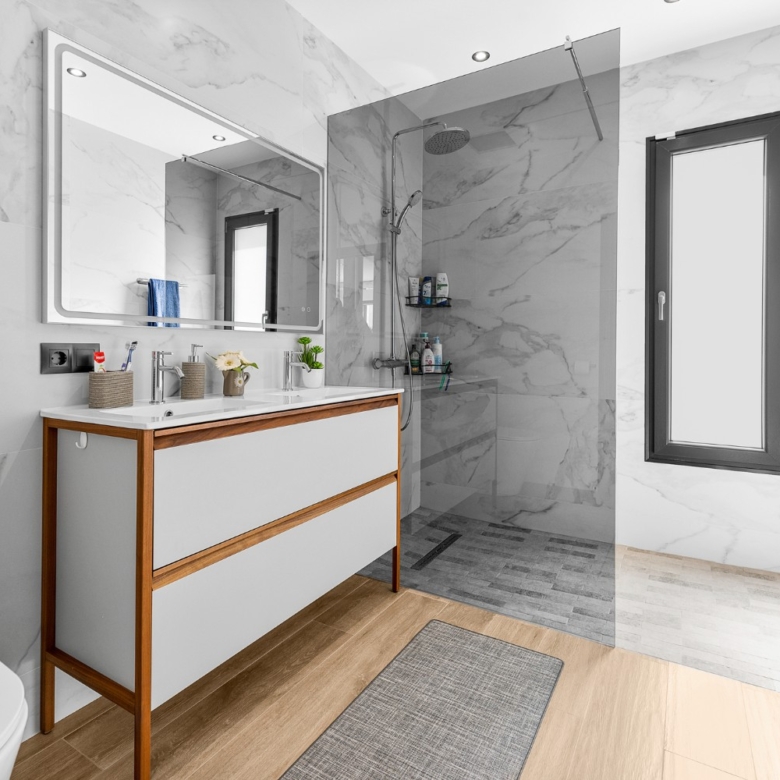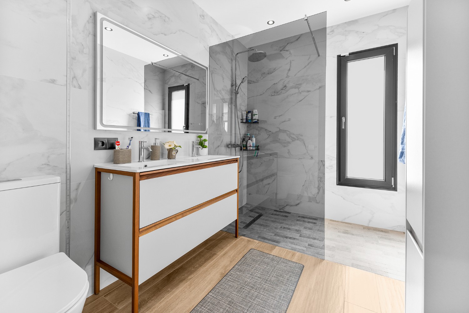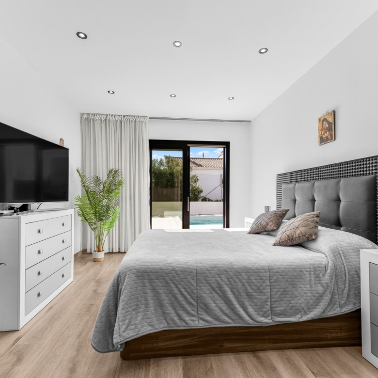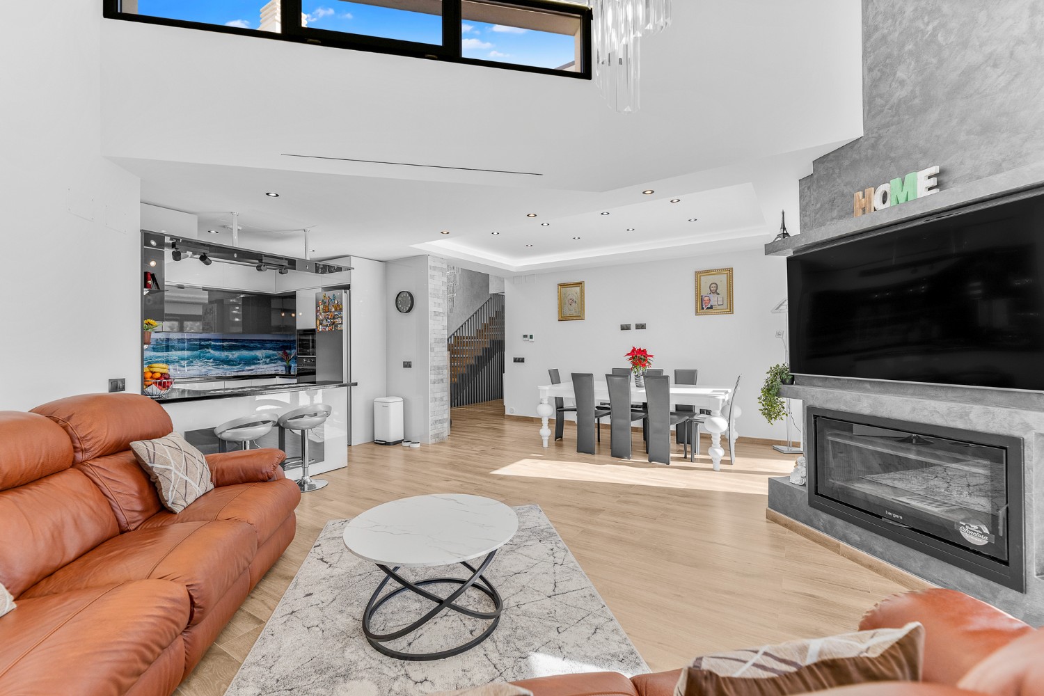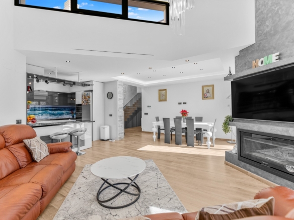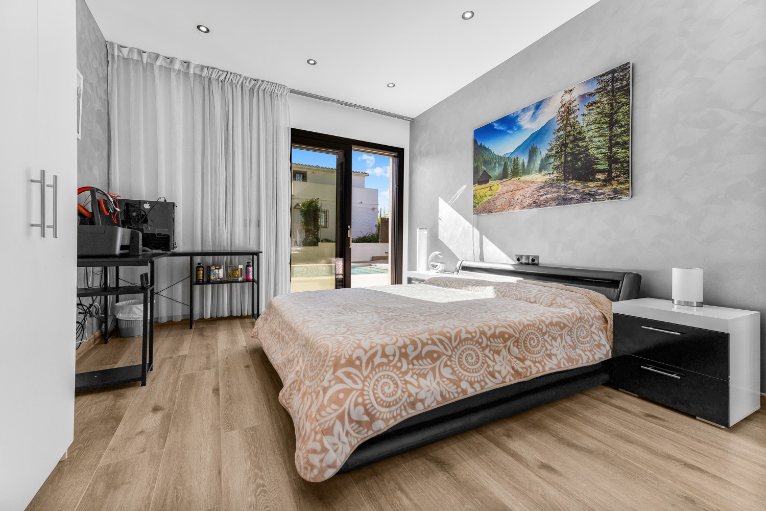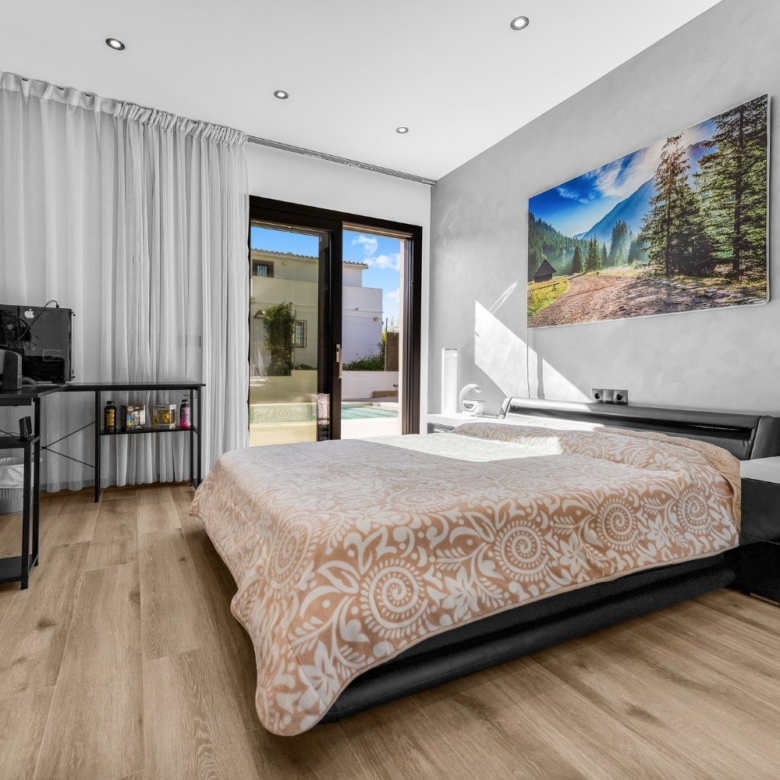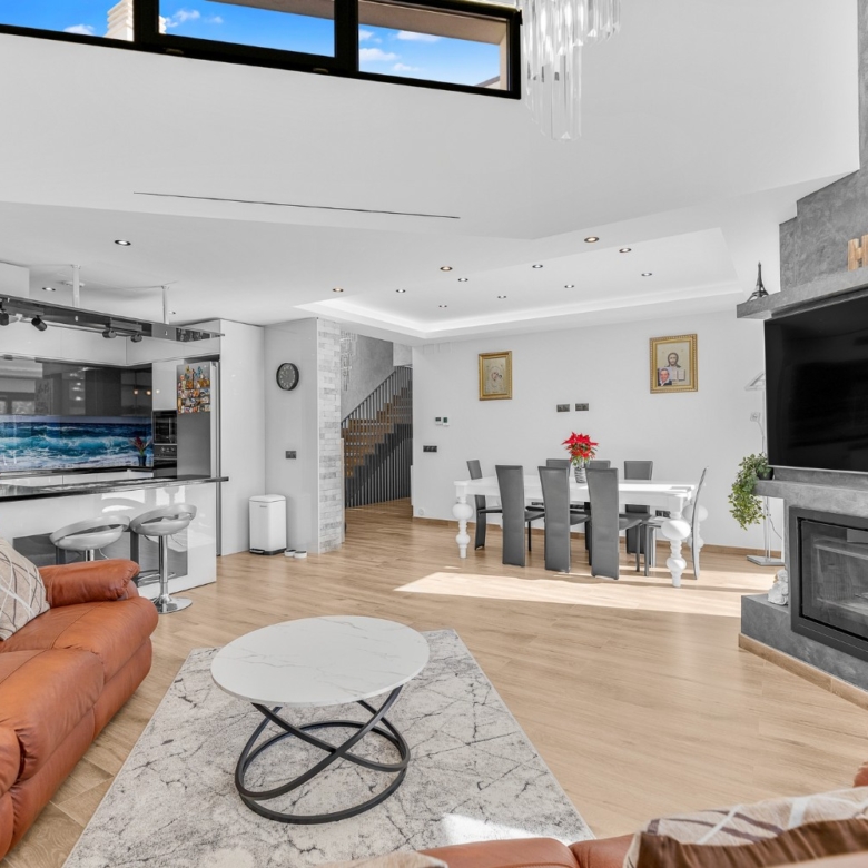 La planta baja cuenta con dos dormitorios bien equipados, uno de ellos con baño en suite. En la planta superior, la lujosa suite principal se abre a un solárium privado con vistas panorámicas y preinstalación para jacuzzi, lo que ofrece la máxima relajación.