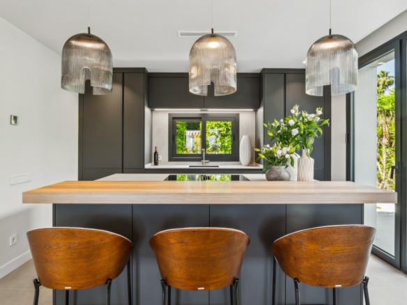 Ubicada en el corazón de Nueva Andalucía, Marbella, esta lujosa villa completamente amueblada ofrece la combinación perfecta de confort moderno y elegancia mediterránea. Ubicada en una parcela de 873 m², la casa de 508 m² se distribuye en tres plantas y cuenta con cinco amplios dormitorios y cinco elegantes baños, ideales para familias o para recibir invitados.