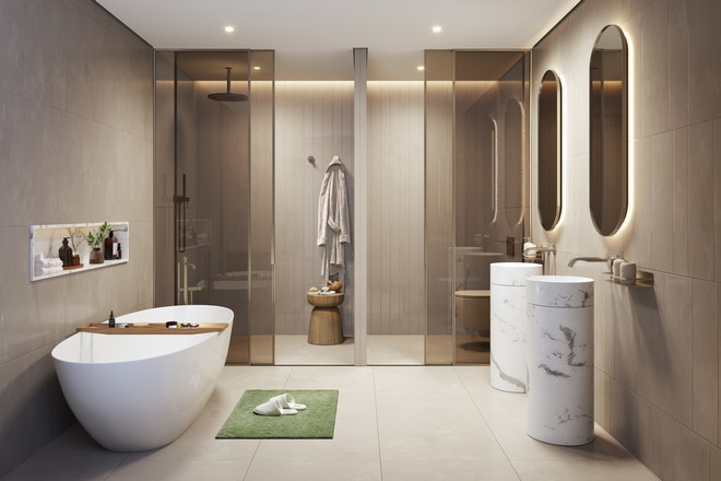 Baños elegantes con accesorios modernos y acabados de primera calidad.