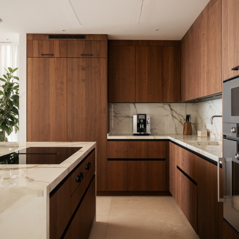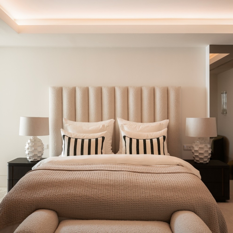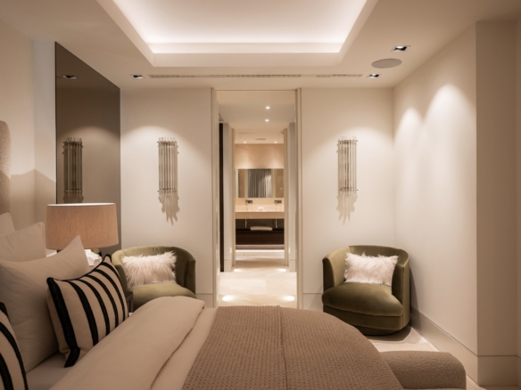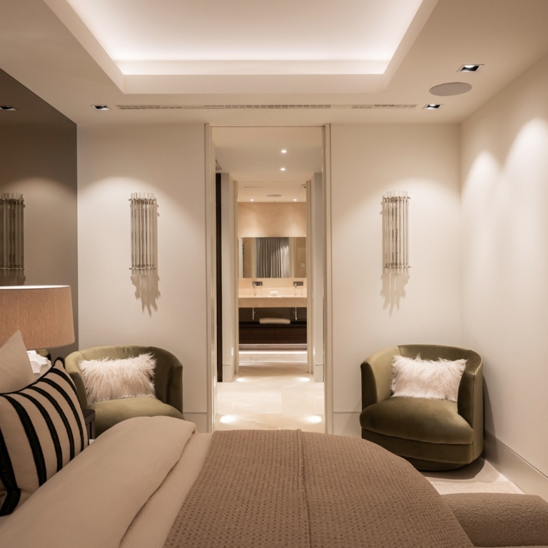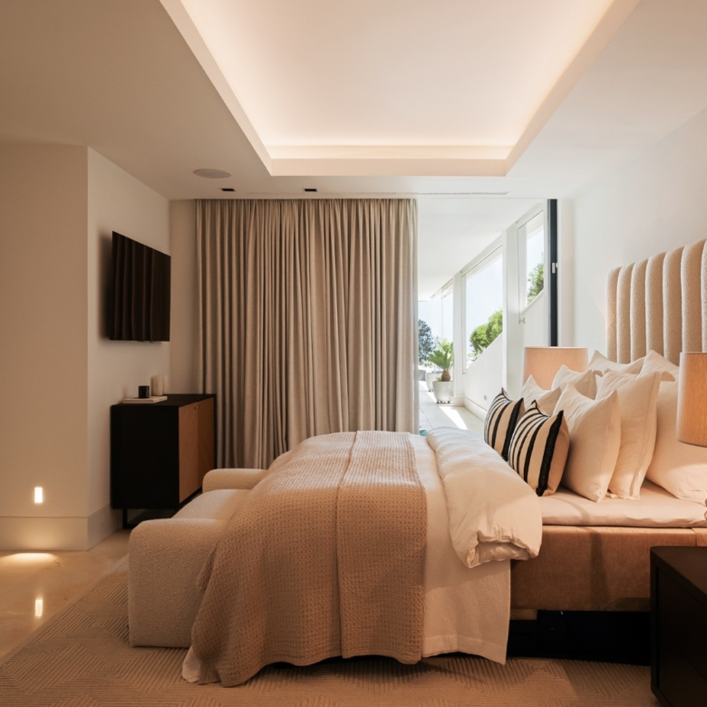 En el ala privada, la suite principal incluye un vestidor y un lujoso baño en suite. Dos dormitorios adicionales con baño en suite ofrecen vistas a los jardines paisajísticos, mientras que un lavadero independiente aporta comodidad a la vida diaria.