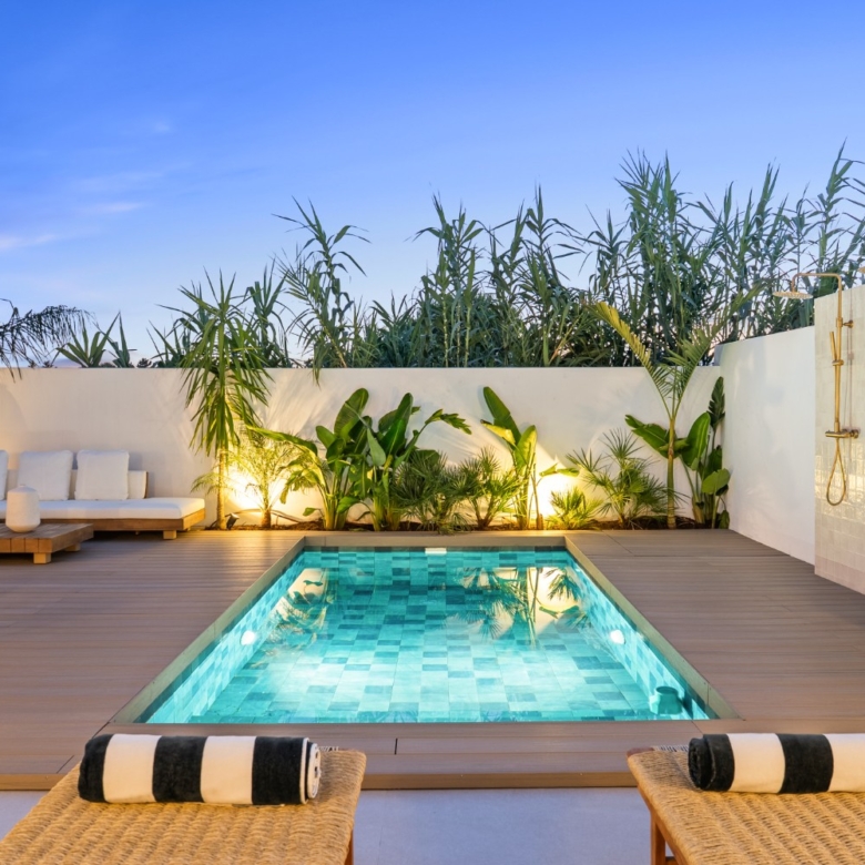 La casa se distribuye en dos plantas y cuenta con tres dormitorios y tres baños, además de una terraza privada con bañera exterior y zona de estar, perfecta para relajarse o disfrutar del tiempo libre. Con una ubicación ideal en Nueva Andalucía, la propiedad se encuentra a poca distancia de la playa y Puerto Banús, y cerca del transporte público, colegios de primer nivel, restaurantes de renombre y el popular Real Club de Pádel. Este prestigioso centro deportivo ofrece pistas de pádel, gimnasios interiores y exteriores, un restaurante y mucho más, lo que lo convierte en un auténtico paraíso para los amantes del deporte y el bienestar.