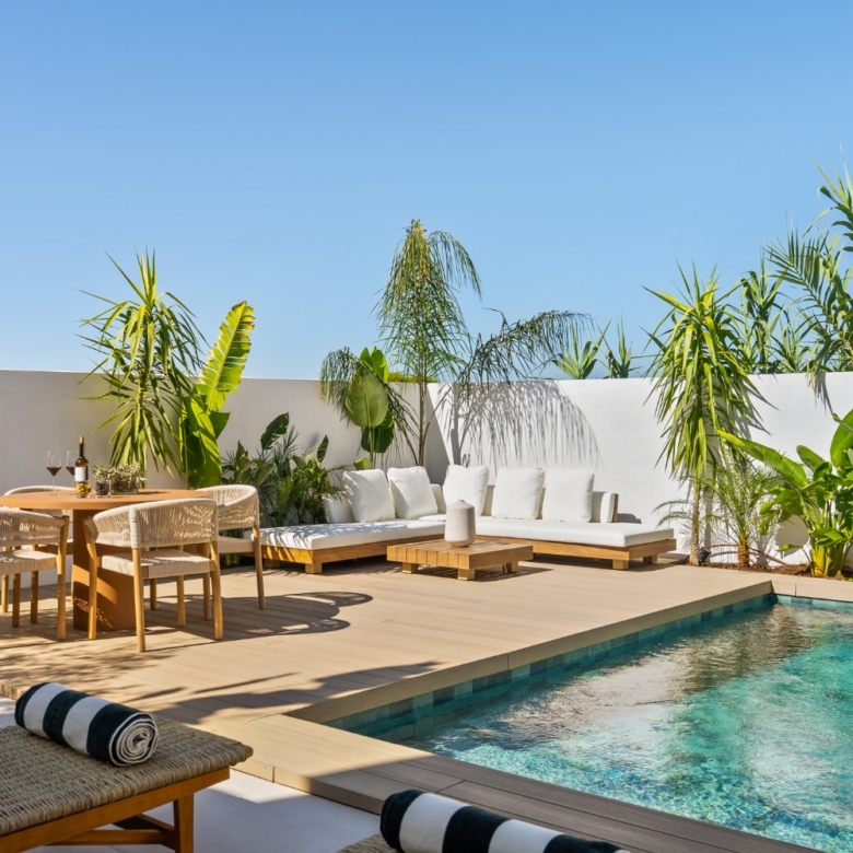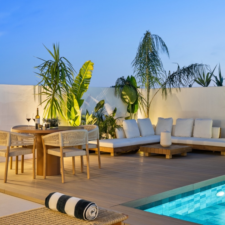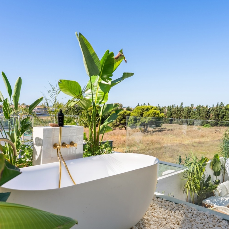 La casa se distribuye en dos plantas y cuenta con tres dormitorios y tres baños, además de una terraza privada con bañera exterior y zona de estar, perfecta para relajarse o disfrutar del tiempo libre. Con una ubicación ideal en Nueva Andalucía, la propiedad se encuentra a poca distancia de la playa y Puerto Banús, y cerca del transporte público, colegios de primer nivel, restaurantes de renombre y el popular Real Club de Pádel. Este prestigioso centro deportivo ofrece pistas de pádel, gimnasios interiores y exteriores, un restaurante y mucho más, lo que lo convierte en un auténtico paraíso para los amantes del deporte y el bienestar.