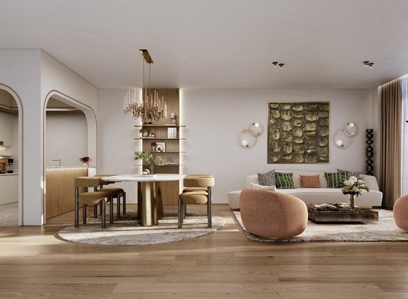 Áreas de estar y comedor: diseños amplios y abiertos diseñados para el entretenimiento y la relajación.