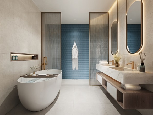 Baños: Las unidades cuentan con varios baños, que incluyen instalaciones en suite, tocador para invitados y accesorios bien equipados.