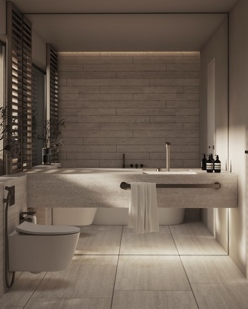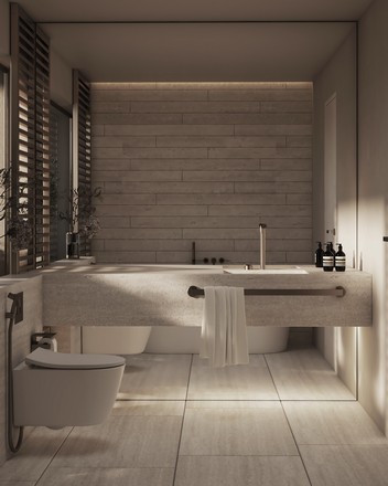 Baños: Accesorios modernos, que incluyen duchas de lluvia y bañeras, diseñados para la comodidad y el lujo.
