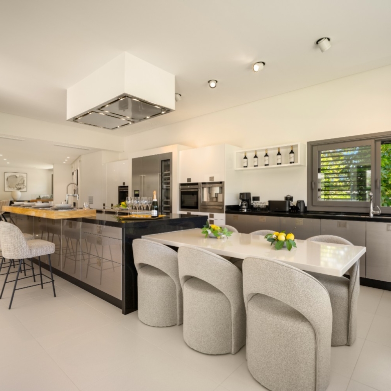 Meticulosamente renovada en 2013 y actualizada en 2024 por Matterhorn Estates, la propiedad combina una arquitectura atemporal con el lujo moderno. Los exuberantes jardines, diseñados por Fantastic Garden, presentan especies exóticas y maduras, como ficus, jacarandas, palmeras e hibiscos tropicales, creando un oasis botánico privado.